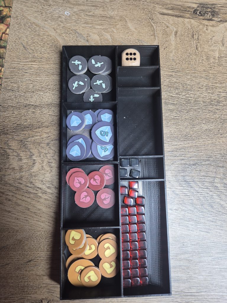 Jak bylo zmíněno, jedna partie se skládá ze tří částí – věží, na jejichž koncích na nás čekají finální bossové. Po jejich poražení se celá hra resetuje, v pravidlech si odškrtneme splněný úspěch, odemkneme odměny v podobě nových karet, a můžeme se pustit do další partie. Mezi jednotlivými třetinami je možné hru „uložit“ do předem připravených prostor v krabici a pokračovat třeba jiný den. Jednu třetinu lze odehrát přibližně za hodinu až hodinu a půl ve dvou hráčích, v sólové variantě jsem se dostal zhruba na půl hodiny. Atmosférou tak hra připomíná velkou kampaňovou záležitost, přesto ji lze bez problémů odehrát během jednoho večera. Zatím se mi nepodařilo prohrát, což je pravděpodobně dáno předchozí zkušeností s digitální verzí (několik set hodin) a hraním na základní obtížnost. Vyšší obtížnosti se odemykají postupně, stejně jako nové karty hrdinů a střetnutí.
